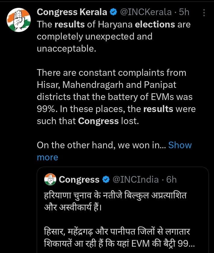 The Congress party expressed shock and disbelief over the election results in Haryana, claiming they cannot accept the outcome after early leads in their favor shifted to a decisive victory for the BJP. The party had previously submitted a letter to the Election Commission, raising concerns about an “unexplained slowdown” in the updating of results.